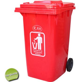 Κάδος της RAM κατασκευασμένος από υψηλής ποιότητας HDPE πλαστικό, με καπάκι και ρόδες.