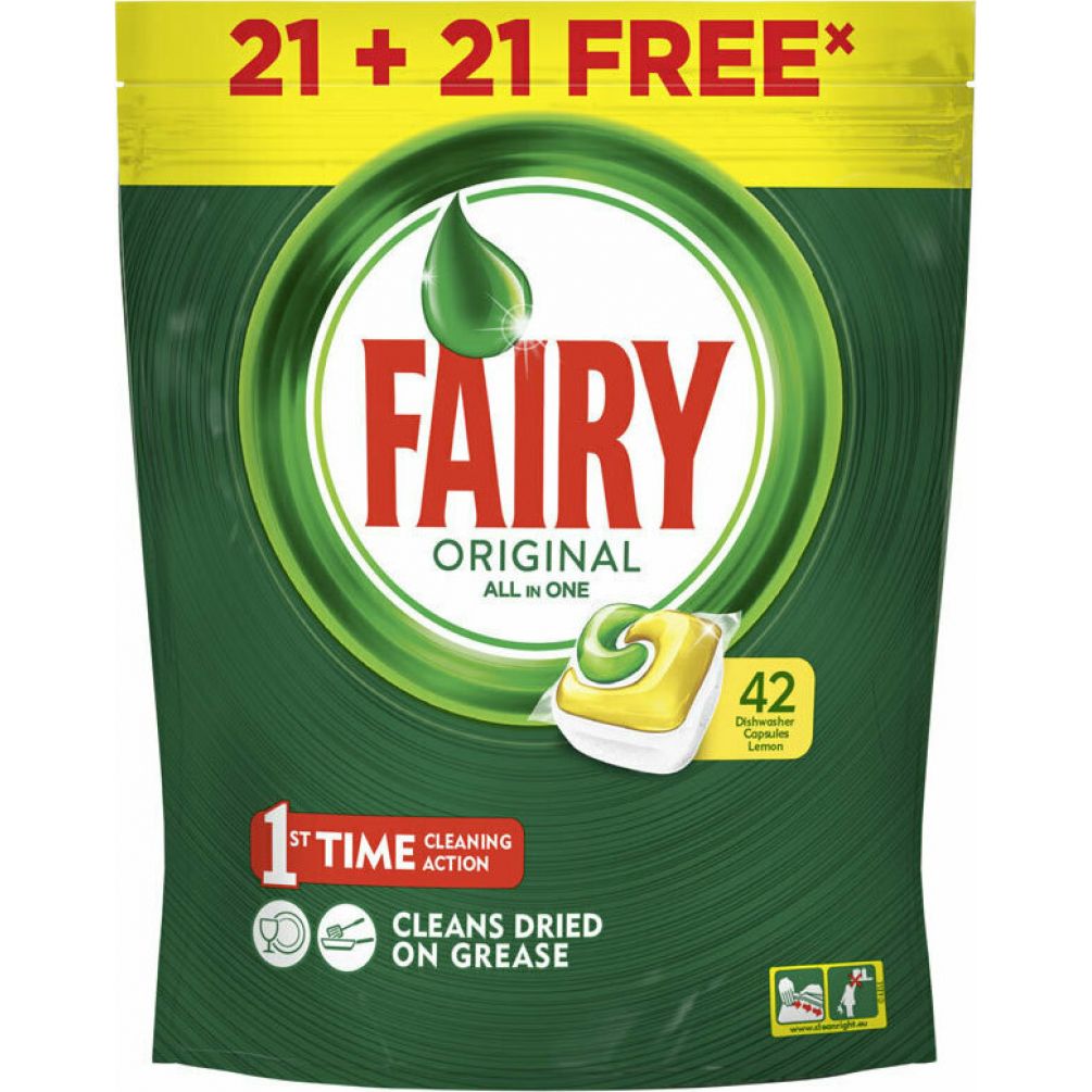 Επιπλέον, είναι απίστευτα εύκολες στη χρήση. Απλώς τοποθετήστε τις στο πλυντήριο πιάτων σας - χωρίς να τις ξετυλίξετε και χωρίς να λερωθείτε. Οι ταμπλέτες πλυντηρίου πιάτων Fairy All in One παρέχουν προηγμένη καθαριότητα στα πιάτα με ξηρά υπολείμματα τροφών με την πρώτη, απομακρύνοντας ακόμη και κολλημένα λίπη ενός 24ώρου. Αφαίρεση σκληρής βρωμιάς και απίστευτη λάμψη. Ισχυρή καθαριστική δράση με υγρό που διαλύει τα λίπη.