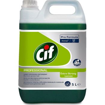 Cif υγρό απορρυπαντικό 5L για πλύσιμο πιάτων στο χέρι, για εξαιρετικά αποτελέσματα σε δύσκολους λεκέδες και ανεξαρτήτως σκληρότητας του νερού. Με άρωμα λεμόνι, εξουδετερώνει άσχημες οσμές.
