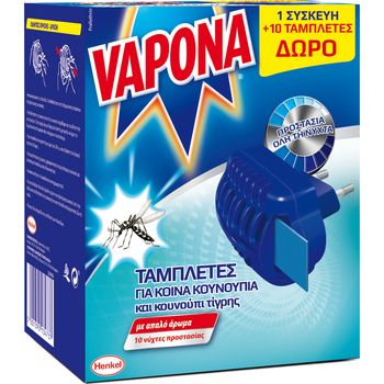 Η νέα ηλεκτρική συσκευή Vapona με ρυθμιστή έντασης και μοντέρνο σχεδιασμό, αποτελεί την ιδανική λύση απέναντι στα κουνούπια και τα κουνούπια τίγρης. Χάρη στην τεχνολογία διπλής αποτελεσματικότητας, μπορείτε να απολαύσετε τις καλοκαιρινές σας νύχτες ακόμα και με τα παράθυρα ανοιχτά και τα φώτα αναμμένα.