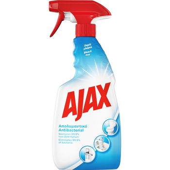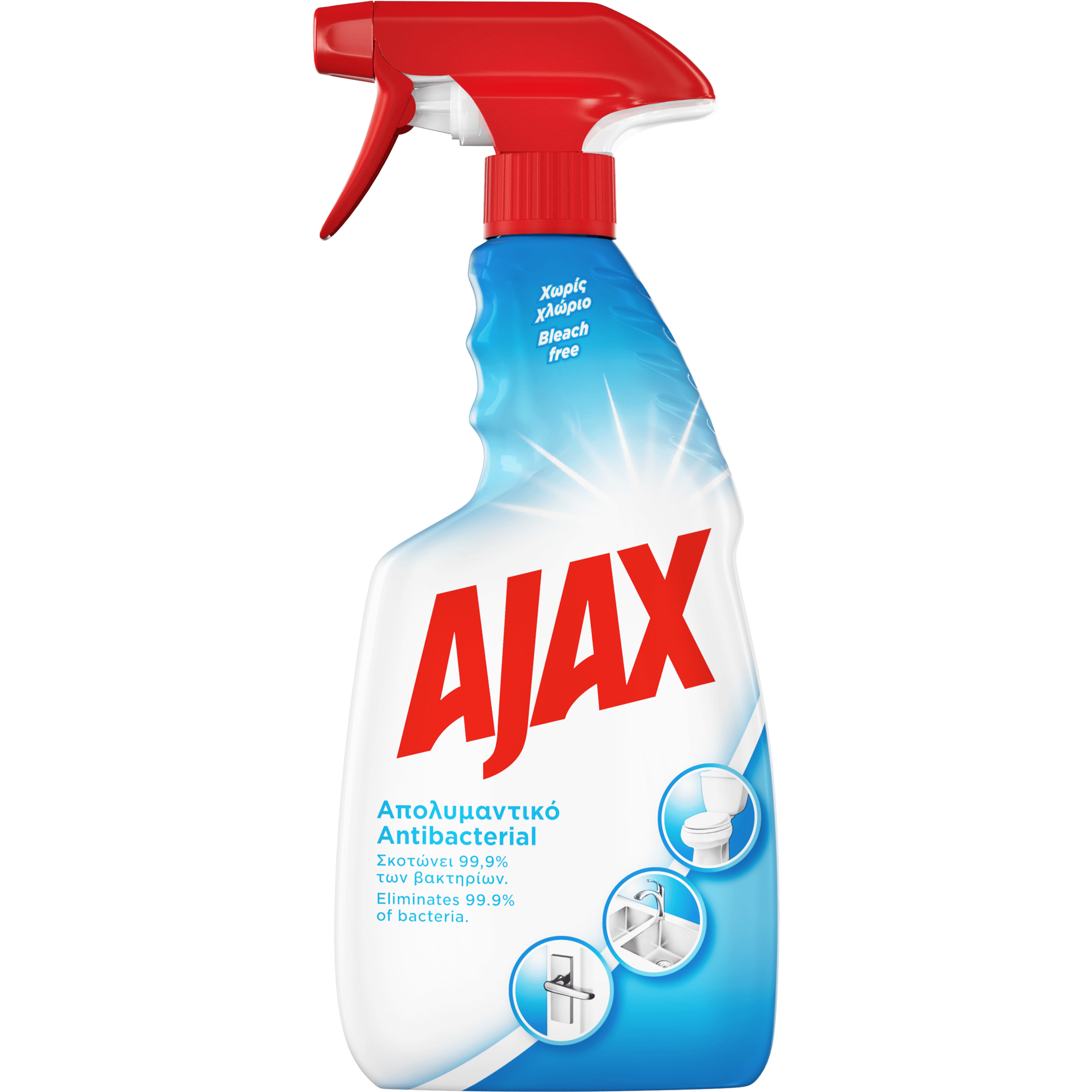 Το Ajax Απολυμαντικό χωρίς χλώριο με την ισχυρή του σύνθεση καθαρίζει άμεσα, σε βάθος και ξεπλένεται έυκολα. Απολυμαίνει σκοτώνοντας το 99,9% των βακτηρίων σέβοντας τις επιφάνειές χαρίζοντας λάμψη.