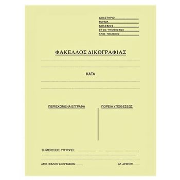 Φάκελος δικογραφίας με ειδική εκτύπωση στο εξώφυλλο.