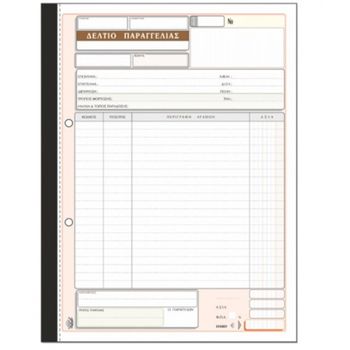 Δελτίο Παραγγελίας, έντυπο για την λήψη παραγγελιών από πωλητές επιχειρήσεων, με δυνατότητα αντιγράφου για τον πελάτη, με ύψος 29cm και πλάτος 21cm.