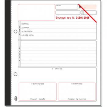 Συνταγή (Ν.3459/2006) Χορήγησης Ναρκωτικών Μπλοκ Συνταγών για ναρκωτικά με μία Κόκκινη γραμμή με ύψος 20cm και πλάτος 18cm.