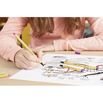 Το Stabilo Point 88, με το χαρακτηριστικό του εξάγωνο σχήμα, αποτελεί ένα από τα πλέον αναγνωρίσιμα μαρκαδοράκια. Με μοναδική μορφή και αξιοπιστία, το Point 88 διαθέτει μύτη πάχους 0,4mm fine με μεταλλικό περίβλημα και ψιλή γραφή, ενώ το μελάνι του έχει βάση το νερό.