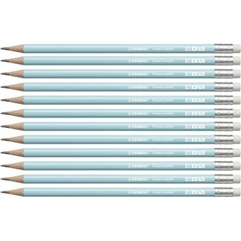 Ξύλινο μολύβι με γόμα από τη Stabilo. Εχει εξάγωνο σχήμα, λεία επιφάνεια και η μύτη του είναι απο γραφίτη, με σκληρότητα μαλακή, HB 2 1/2. Ιδανικό μολύβι για γράψιμο ή σχέδιο, για το σχολείο ή το γραφείο. Σε έξι όμορφα παστέλ χρώματα, πράσινο, κίτρινο, λιλά, βερικοκί, ροζ, μπλε, τα οποία δίνουν μία επιπλέον νότα κομψότητας στο μολύβι.