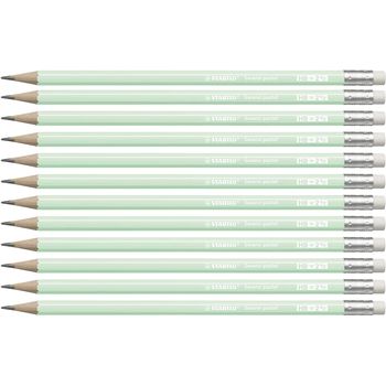 Ξύλινο μολύβι με γόμα από τη Stabilo. Εχει εξάγωνο σχήμα, λεία επιφάνεια και η μύτη του είναι απο γραφίτη, με σκληρότητα μαλακή, HB 2 1/2. Ιδανικό μολύβι για γράψιμο ή σχέδιο, για το σχολείο ή το γραφείο. Σε έξι όμορφα παστέλ χρώματα, πράσινο, κίτρινο, λιλά, βερικοκί, ροζ, μπλε, τα οποία δίνουν μία επιπλέον νότα κομψότητας στο μολύβι