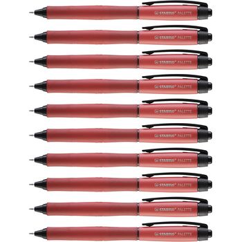 Blank page Το Palette είναι ένα στυλό με πρωτοποριακή gel τεχνολογία απο τη Stabilo. Περιέχει μελάνι σε μορφή gel, το οποίο προσφέρει σταθερή & συνεχόμενη γραφή χωρίς κηλίδες και μουτζούρες ενώ με το έξυπνο παράθυρο δείκτη μελάνης έχεις πάντα τον έλεγχο της στάθμης του μελανιού. Το Palette συνδυάζει μοντέρνο σχεδιασμό, και καινοτόμα χαρακτηριστικά, τα οποία το κατατάσσουν στη λίστα με τα πιο συναρπαστικά στυλό gel της αγοράς. Η εργονομική λαβή του Palette από αντιολισθητικό υλικό το καθιστά άνετο στη χρήση, για ξεκούραστο κράτημα και γραφή ακόμη και μετά από πολύωρη χρήση, ενώ η μύτη του πάχους 0.4mm είναι εξαιρετικά ανθεκτική στη χρήση. Διαθέτει κουμπί και clip στο καπάκι για εύκολη μεταφορά. Το Palette είναι ένα στυλό υψηλής ποιότητας ιδανικό για στυλάτους και απαιτητικούς χρήστες. Ο πολύχρωμος σχεδιασμός του Palette ξεχωρίζει, καθώς διατίθεται σε εφτά (7) διαφορετικούς χρωματικούς συνδυασμούς, κόκκινο, μαύρο, μπλε, γαλάζιο, πράσινο, πορτοκαλί, ροζ. Το συγκεκριμένο στυλό είναι χρώματος κόκκινο, με κόκκινο μελάνι, και διατίθεται σε συσκευασία των 10 τεμαχίων. Αγοράζοντας αυτή τη συσκευασία των δέκα τεμαχίων, η τιμή ανά στυλό είναι κατά πολύ χαμηλότερη απ' οτι αγοράζοντας ένα στυλό μόνο του.