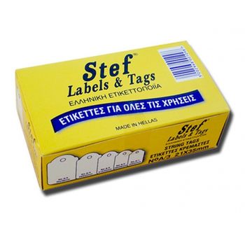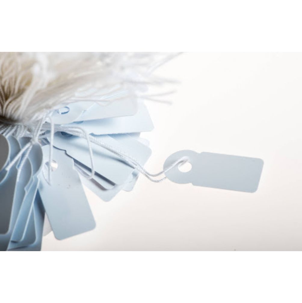Ετικέτες κρεμαστές από εξαιρετικής ποιότητας χαρτί, με περασμένη λευκή κλωστή.