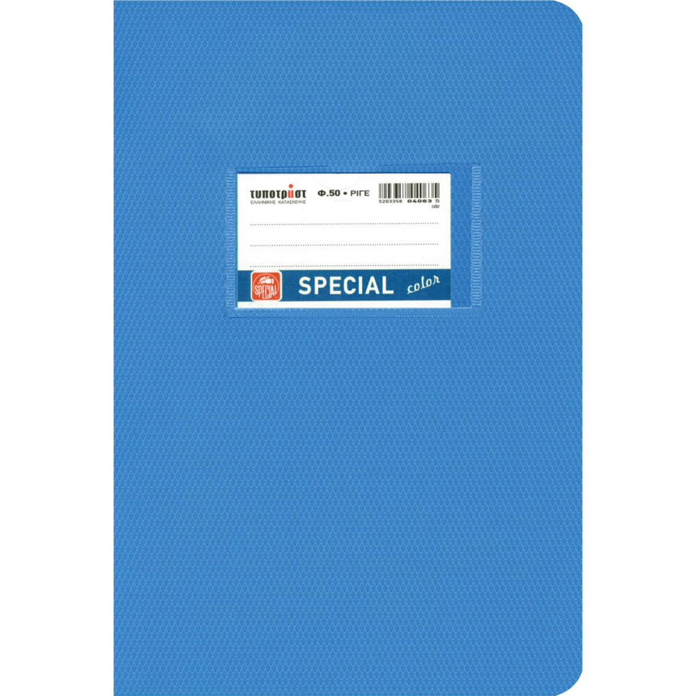Χρωματιστό Special Τετράδιο 50 φύλλων, διάστασης B5 (17x25) με πλαστικό εξώφυλλο.