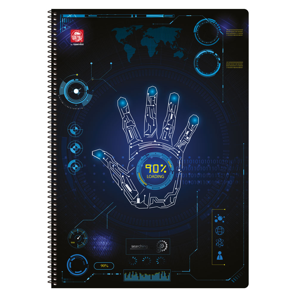 Τετράδιο σπιράλ 2 θεμάτων A4 (21x29,7) με εξώφυλλο paperboard 350γρ και με σκληρό οπισθόφυλλο για να μπορείς να γράφεις σταθερά.