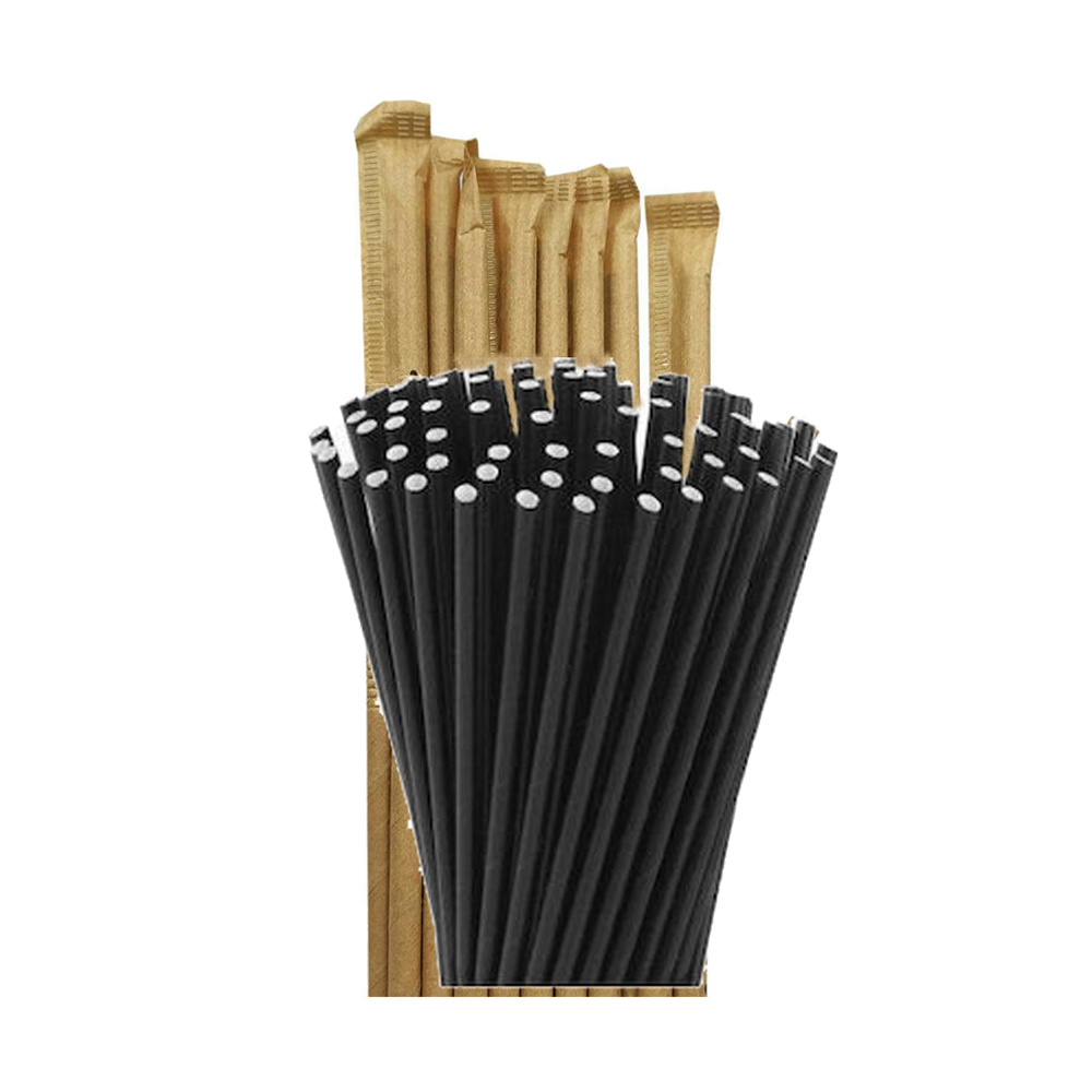 Χάρτινο (PLA) Καλαμάκι ίσιο, μαύρο, Freddo συσκευασμένο.