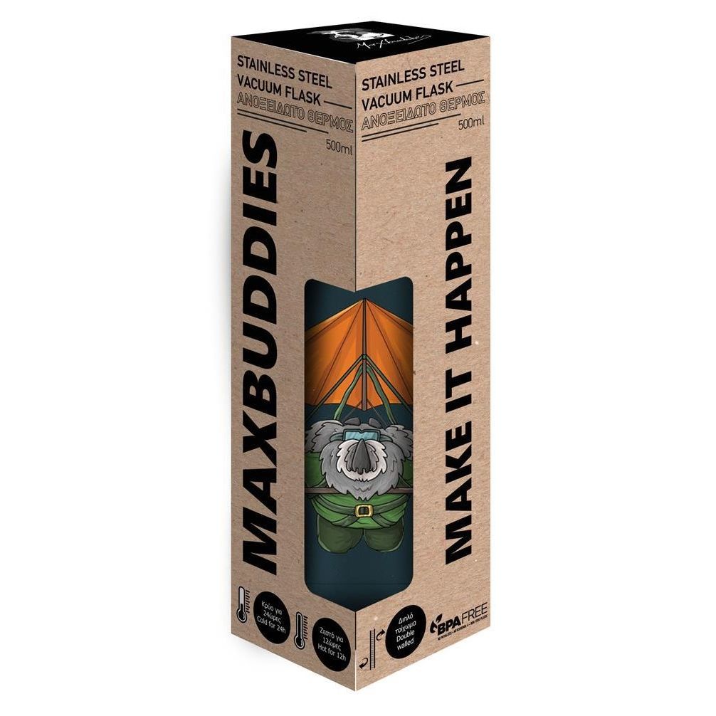 Θερμός Maxbuddies 500 ml Ανοξείδωτο 26,5x7 εκ. σε με διπλό τοίχωμα, ιδανικό για ζεστά και κρύα ροφήματα, και απαραίτητο αξεσουάρ για κάθε αθλητική δραστηριότητα, το σχολείο, την εργασία και τις καθημερινές βόλτες!