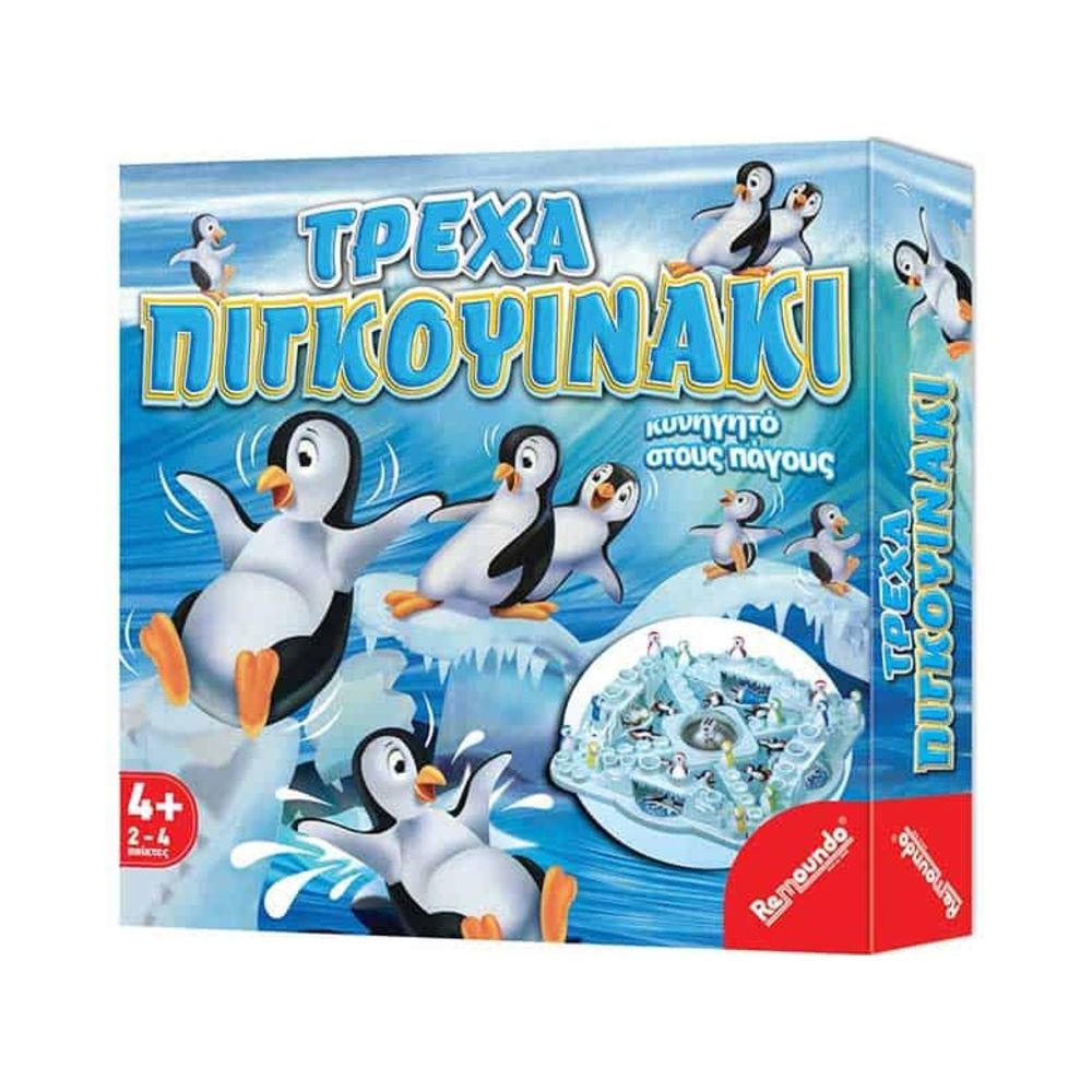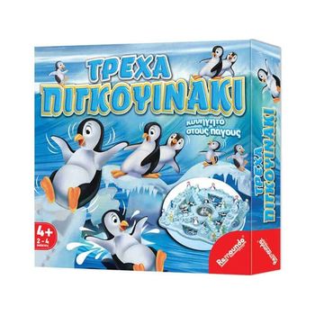 Χτύπα τη μπάλα με το ζάρι για να τρέξουν τα πιγκουινάκια σου γύρω – γύρω στο ταμπλό. Φτάσε πρώτος στο τέρμα και κέρδισε. Πρόσεξε όμως μη γλιστρήσουν και πέσουν από τις παγωμένες γέφυρες. Ένα θεότρελο παιχνίδι κυνηγητού στους πάγους.