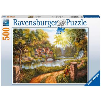 Ένα τοπίο με ένα εξοχικό δίπλα στο ποτάμι. Χαλαρωτική εικόνα, σε ένα παζλ από την Ravensburger!