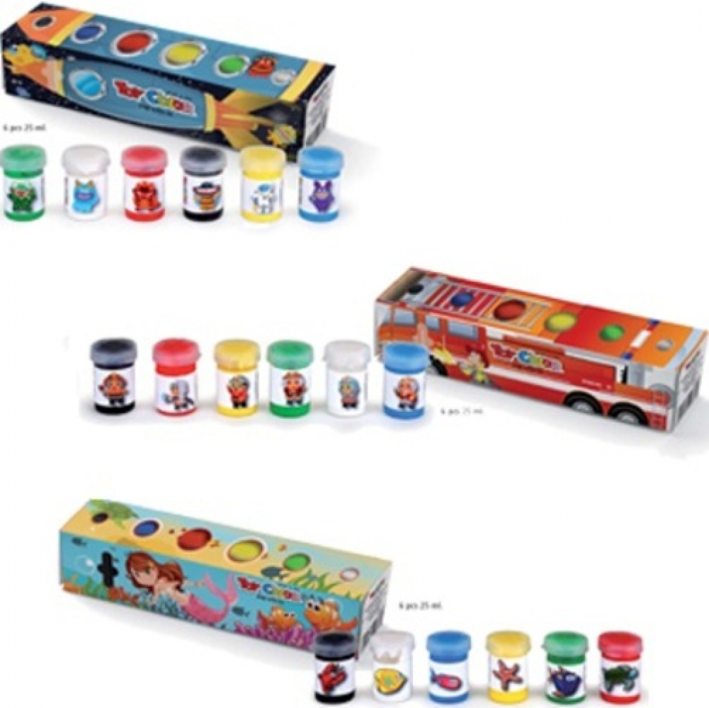 Δακτυλομπογιές σε 6 χρώματα χωρίς τοξικά συστατικά, σε πλαστικό δοχείο 25gr για τη δημιουργική απασχόληση των μικρών μας φίλων.