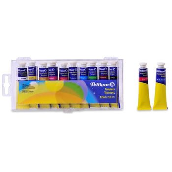 Pelikan τέμπερες ζωγραφικής, σε πλαστική συσκευασία 10 φωτεινών χρωμάτων των 12ml με κρεμώδη υφή. Είναι ανώτερης ποιότητας, πολύ ανθεκτικά στο φως, με δυνατότητα υψηλής κάλυψης και αφού στεγνώσουν αφήνουν μια ματ επιφάνεια.