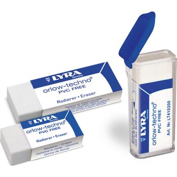 Γόμα Lyra Orlow Techno σε πλαστική θήκη για να διατηρείται πάντα καθαρή.