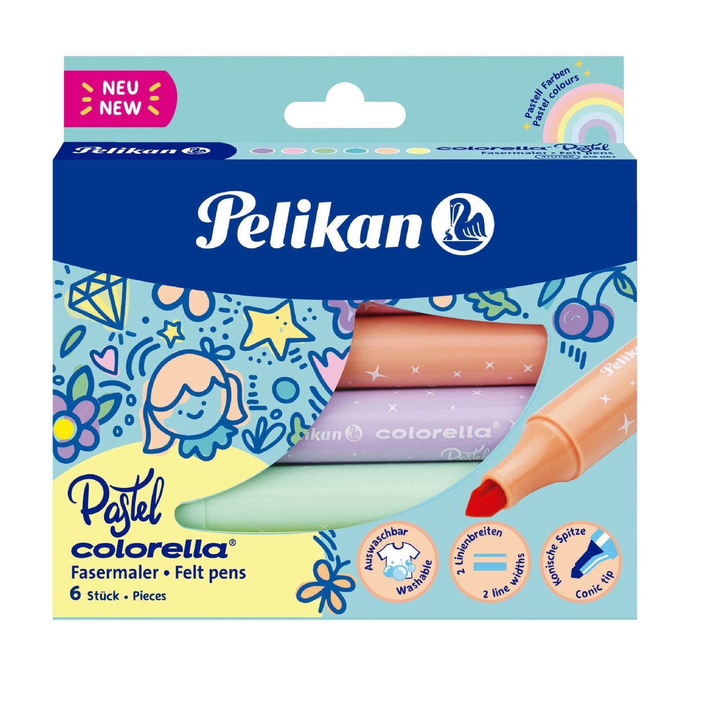 Μαρκαδόροι Pelikan χονδροί σε 6 όμορφα παστέλ χρώματα.