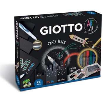 Περιλαμβάνει: 6x Μαρκαδόρους Giotto Decor Materials, 2x Μαρκαδόρους Giotto Decor Metallic, 5x Giotto Κόλλες Glitter Metallic, 10x μαύρα χαρτόνια 220g/m2, 1x βιβλίο δημιουργίας.
