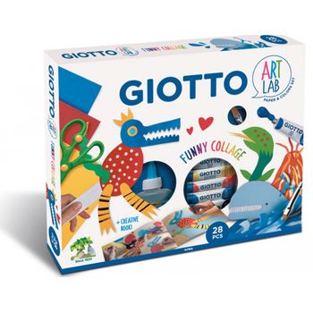 Περιλαμβάνει: 5x10ml Giotto Τέμπερες, 1x Giotto Collage Κόλλα 120g, 1x Giotto Πινέλο Taklon n10, 1xψαλίδι, 20x Χρωματιστές κάρτες 120g/m2, 1x Βιβλίο δημιουργίας.