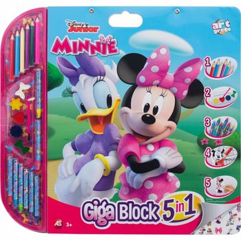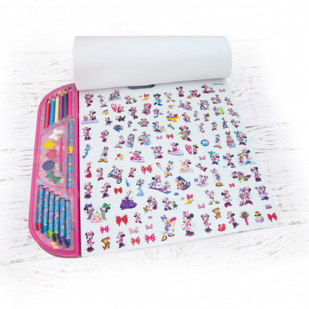Περιέχει 6 ξυλομπογιές, 8 κηρομπογιές, 6 νερομπογιές, αυτοκόλλητα και προτυπωμένα φύλλα σχεδιασμού με την αγαπημένη σου Minnie.