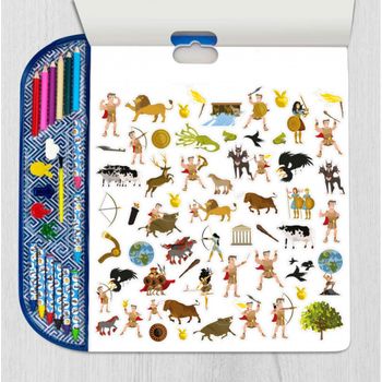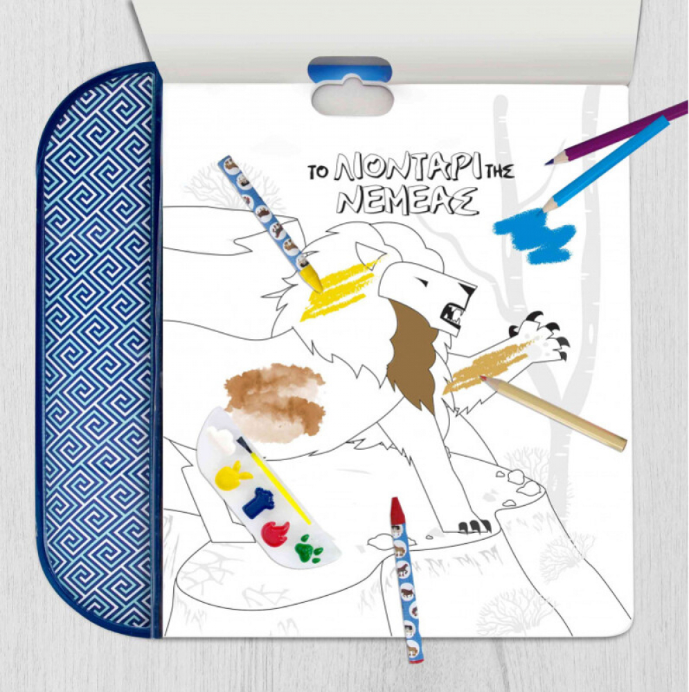 Περιέχει ξυλομπογιές, κηρομπογιές, νερομπογιές, αυτοκόλλητα και προτυπωμένα φύλλα.