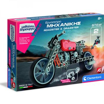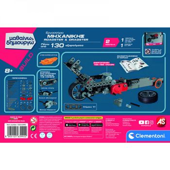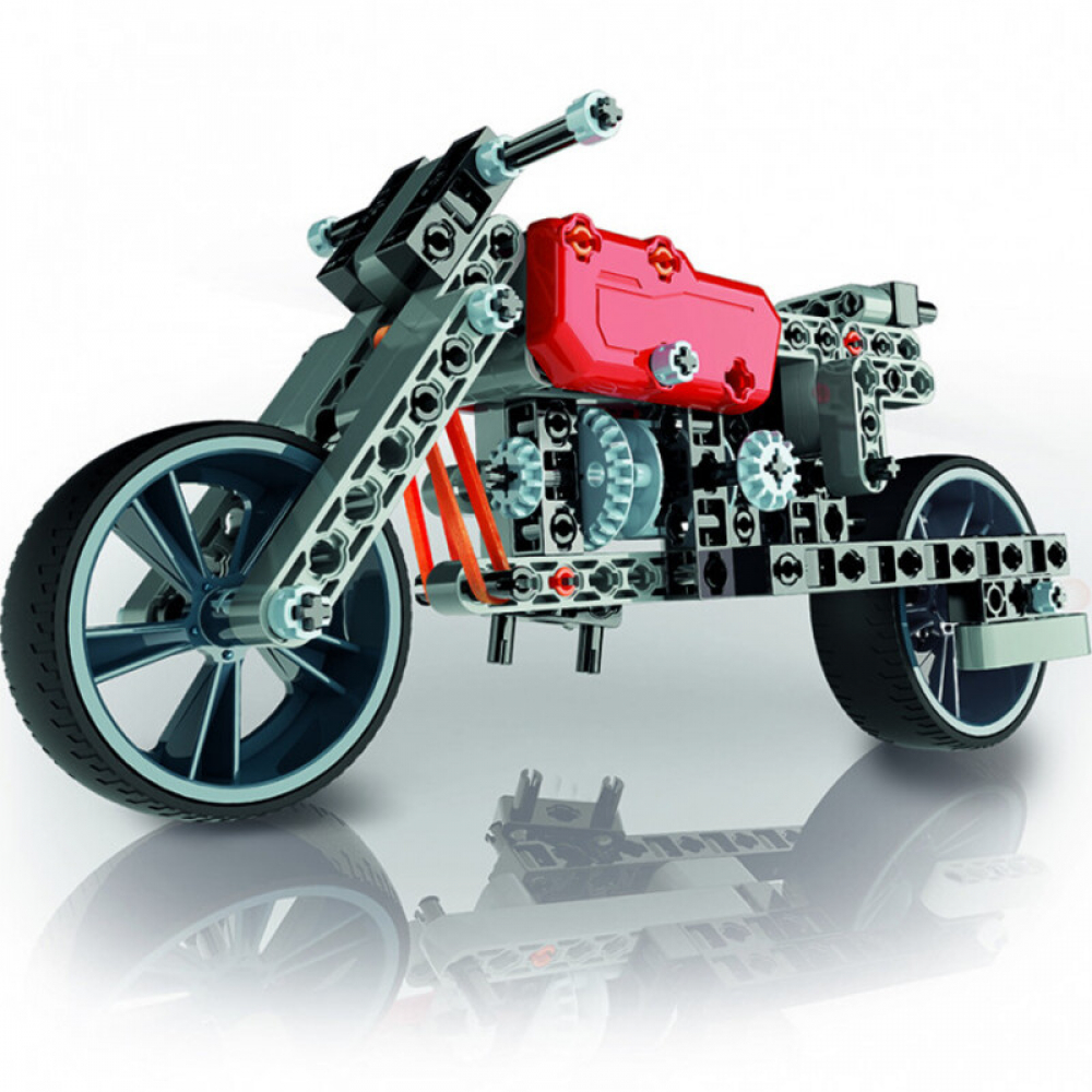 Περιλαμβάνονται οδηγίες για τη συναρμολόγηση δύο δυναμικών μοντέλων: ένα όχημα dragster και μια μοτοσυκλέτα roadster. Το παιδί μαθαίνει για τους μηχανισμούς στο σύστημα μετάδοσης κίνησης.