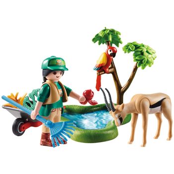 Η φροντιστής του Ζωολογικού Κήπου ταΐζει τη μικρή γαζέλα.