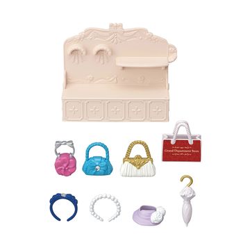 Το σετ Επίπλων για Είδη Μόδας διαθέτει υπέροχα αξεσουάρ όπως τσάντες, καπέλο και ομπρέλα τοποθετημένα σε μια μεγάλη ραφιέρα για την επίδειξη τους. Είναι ένα τέλειο σετ για να το προσθέσεις μέσα στο Μεγάλο Πολυκατάστημα (πωλείται ξεχωριστά).