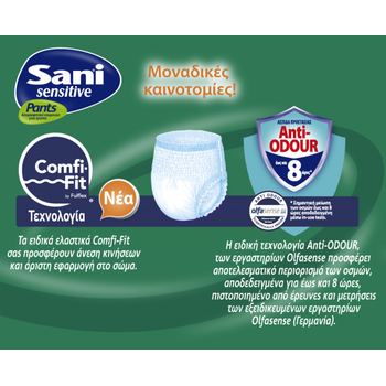 Τα ελαστικά εσώρουχα ακράτειας Sani Pants, είναι ειδικά σχεδιασμένα για να σας προσφέρουν απορροφητικότητα, διακριτικότητα και φιλική προστασία στο δέρμα.