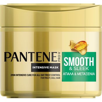 Η πλούσια κρεμώδης σύνθεσή της μάσκας μαλλιών "Απαλά και Μεταξένια" Smooth and Sleek Pantene Pro-V ενάντια στο φριζάρισμα, με μίκρο-συστατικά λείανσης, βοηθά στη λείανση των μαλλιών.