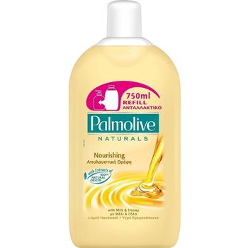 Το υγρό κρεμοσάπουνο Palmolive Naturals Απολαυστική Θρέψη, έχει σύνθεση χωρίς σαπούνι, εμπλουτισμένη με εκχυλίσματα γάλακτος και μελιού, 100% φυσικής προέλευσης και aloe vera.