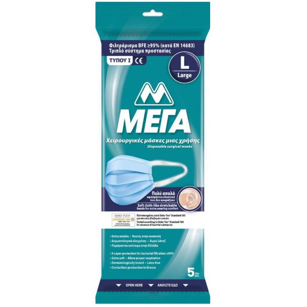 Μάσκες Προστασίας μιας Χρήσης Χειρουργικές Τύπου Ι ΕΝ14683 Large ΜΕΓΑ (Συσ./5τεμ)