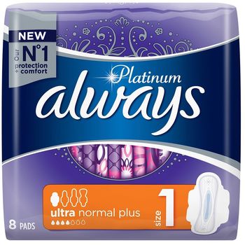 Οι Always Platinum Normal (μέγεθος 1) με φτερά, προτείνονται για καθημερινή χρήση σε περίπτωση μικρής και μέτριας ροής.