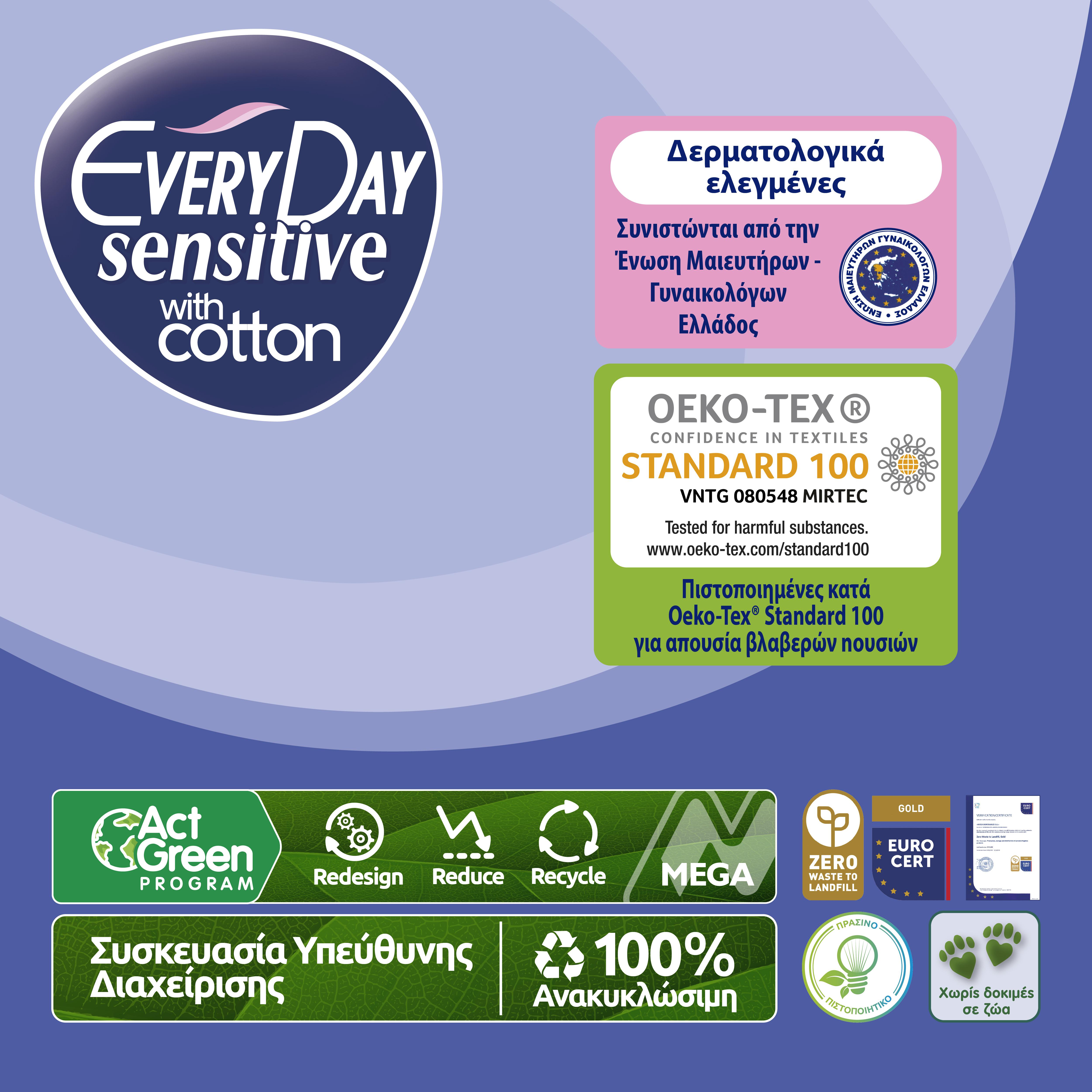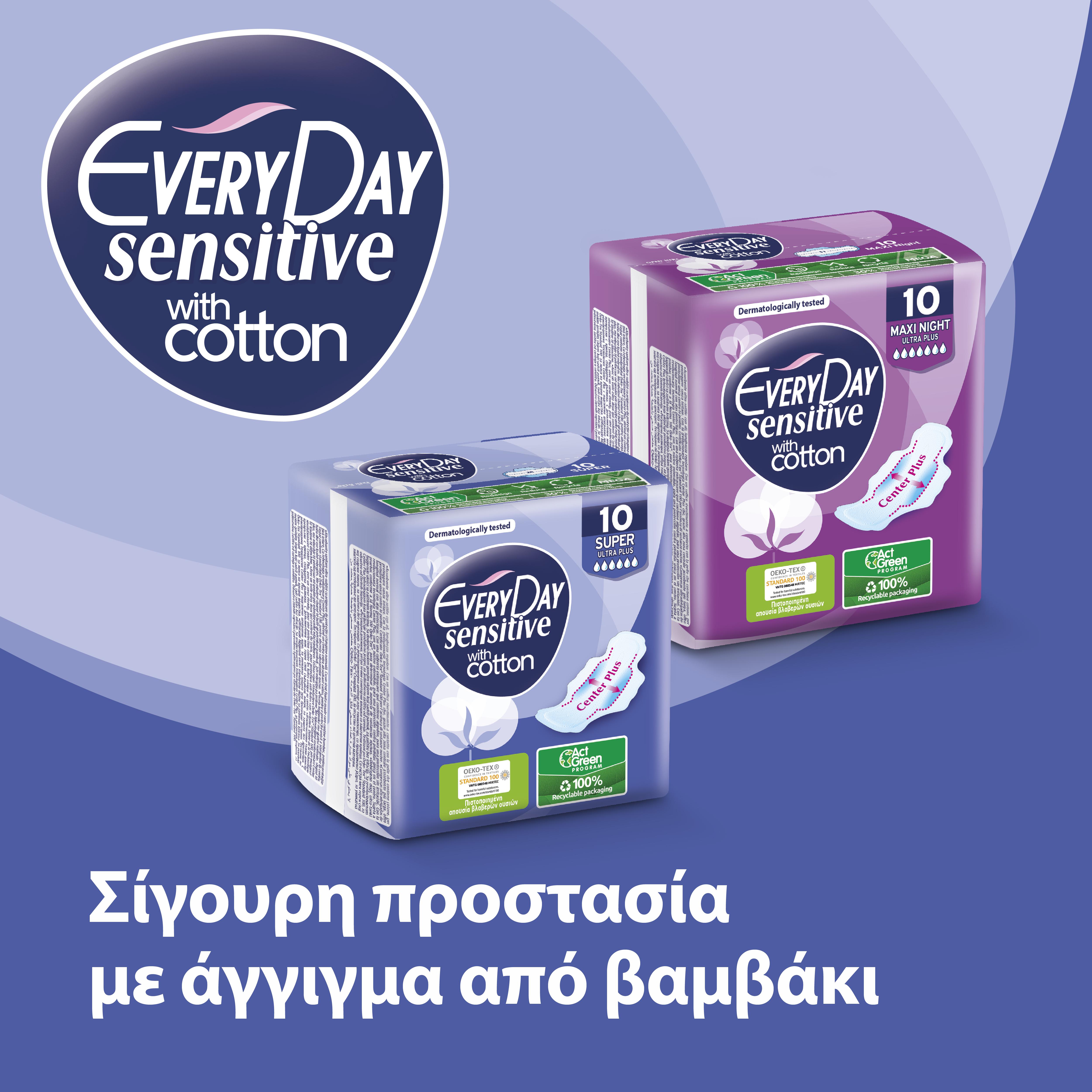 Με Sensitive σχεδιασμό, προσφέρει ολοκληρωμένη υγιεινή προστασία χωρίς ερεθισμούς, χάρη στο ειδικό υγιεινό, υφασμάτινο κάλυμμά της.