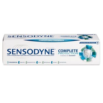 Ταυτόχρονα, σας παρέχονται όλα τα οφέλη της καθημερινής στοματικής φροντίδας, σε μία ολοκληρωμένη οδοντόκρεμα για τα ευαίσθητα δόντια. Με βούρτσισμα δύο φορές την ημέρα, η Sensodyne Complete Protection ενδυναμώνει το σμάλτο των δοντιών σας, προστατεύτει από την πλάκα, διατηρεί την καλή υγεία των ούλων και και χαρίζει αίσθηση καθαριότητας και φρεσκάδας.