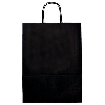Οι χάρτινες τσάντες είναι κατασκευασμένες από μαύρο χαρτί 90gsm. Οι δύο λαβές τους είναι κατασκευασμένες από μαύρο στριφτό χαρτί.