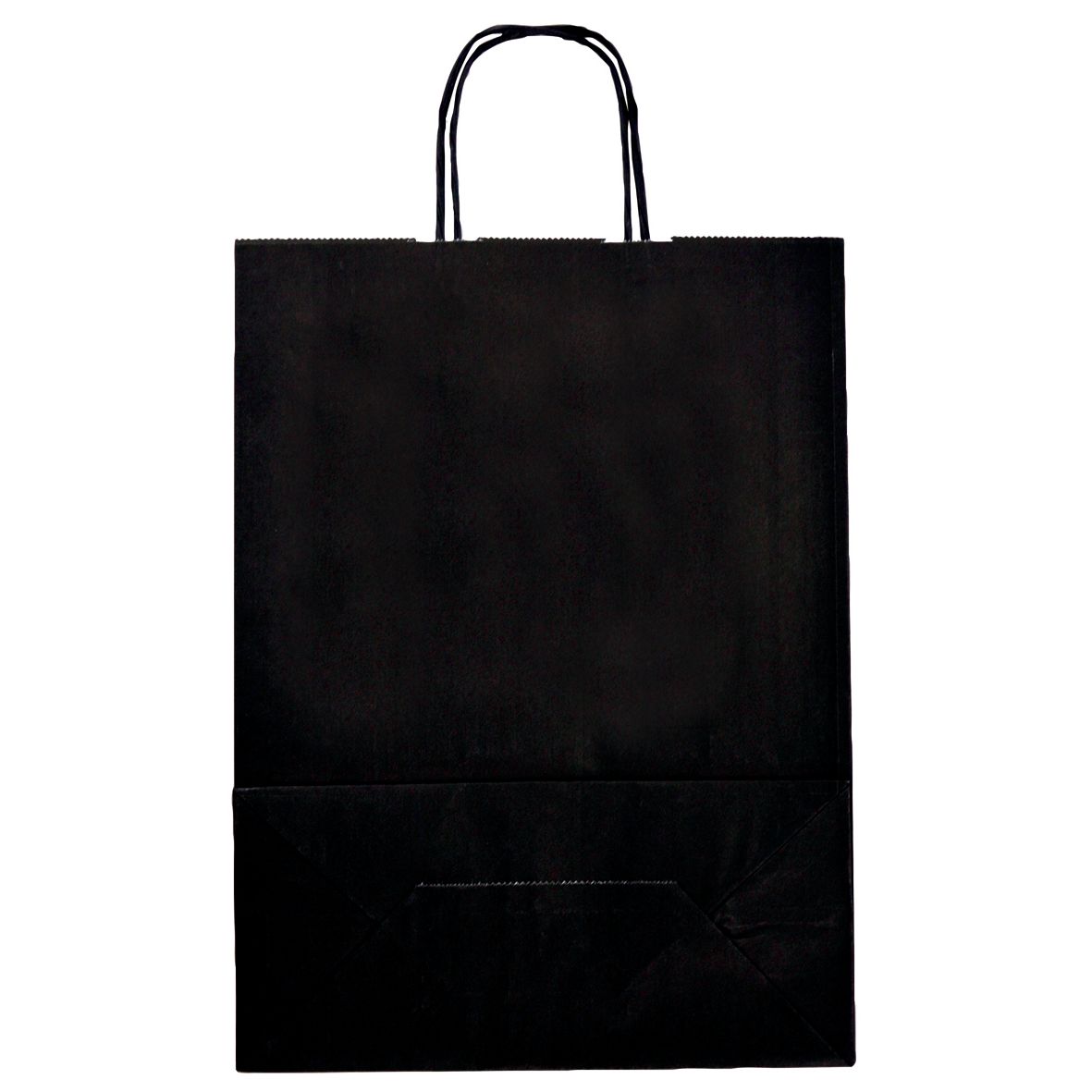 Οι χάρτινες τσάντες είναι κατασκευασμένες από μαύρο χαρτί 90gsm. Οι δύο λαβές τους είναι κατασκευασμένες από μαύρο στριφτό χαρτί. Διατίθεται σε μέγεθος 32x41x12cm.