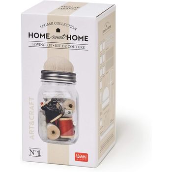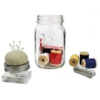 Blank page Σετ ραπτικής Complete με πολλά αξεσουάρ σε στυλ ρετρό απο τη Legami. Σε γυάλινο βάζο με μαλακό πώμα που σας επιτρέπει να καρφιτσώνετε βελόνες και καρφίτσες. Αυτό το σέτ περιέχει όλα τα απαραίτητα αξεσουάρ που χρειάζεται ένας ερασιτέχνης ή ένας πιο έμπειρος ράφτης. Μία ιδανική λύση για δώρο.