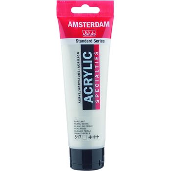 Blank page Ακρυλικό χρώμα Pearl White 817 της σειράς Amsterdam All Acrylics Specialties Standard Series σε συσκευασία των 120ml. Τα χρώματα Amsterdam Standard Series είναι εξαιρετικής ποιότητας ακρυλικά χρώματα με την εγγύηση της Ολλανδικής Royal Talens. Φτιαγμένα με υψηλής ποιότητας, ανθεκτικές στο φως χρωστικές, εχουν βαθμολογία αντοχής στο φως +++ (100+ χρόνια υπό συνθήκες μουσείου). Η σειρά Standard σας προσφέρει μία ευρεία γκάμα από εξαιρετικά ζωντανά αδιαφανή ακρυλικά χρώματα, εύκολα στη χρήση, τα οποία προσφέρουν ομαλή εφαρμογή. Χρησιμοποιήστε το χρώμα απευθείας από το σωλήνα ή αραιωμένο με λίγο νερό ή ένα από τα διαλυτικά για ακρυλικά χρώματα. Είναι κατασκευασμένα με 100% συνδετικό ακρυλικής ρητίνης, με αποτέλεσμα μια εξαιρετικά ανθεκτική και εύκαμπτη μεμβράνη βαφής με ομοιόμορφο βαθμό γυαλάδας. Άοσμη φόρμουλα με βάση το νερό η οποία γίνεται αδιάβροχη και με μέγάλη αντοχή όταν στεγνώσει. Προσκολλάται σχεδόν σε οποιαδήποτε ελαφρώς πορώδη επιφάνεια, συμπεριλαμβανομένου καμβά, χαρτιού, χαρτονιού, ξύλου, πέτρας και τσιμέντου.