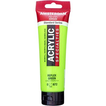 Blank page Ακρυλικό χρώμα Reflex Green 672 της σειράς Amsterdam All Acrylics Specialties Standard Series σε συσκευασία των 120ml. Τα χρώματα Amsterdam Standard Series είναι εξαιρετικής ποιότητας ακρυλικά χρώματα με την εγγύηση της Ολλανδικής Royal Talens. Φτιαγμένα με υψηλής ποιότητας, ανθεκτικές στο φως χρωστικές, εχουν βαθμολογία αντοχής στο φως +++ (100+ χρόνια υπό συνθήκες μουσείου). Η σειρά Standard σας προσφέρει μία ευρεία γκάμα από εξαιρετικά ζωντανά αδιαφανή ακρυλικά χρώματα, εύκολα στη χρήση, τα οποία προσφέρουν ομαλή εφαρμογή. Χρησιμοποιήστε το χρώμα απευθείας από το σωλήνα ή αραιωμένο με λίγο νερό ή ένα από τα διαλυτικά για ακρυλικά χρώματα. Είναι κατασκευασμένα με 100% συνδετικό ακρυλικής ρητίνης, με αποτέλεσμα μια εξαιρετικά ανθεκτική και εύκαμπτη μεμβράνη βαφής με ομοιόμορφο βαθμό γυαλάδας. Άοσμη φόρμουλα με βάση το νερό η οποία γίνεται αδιάβροχη και με μέγάλη αντοχή όταν στεγνώσει. Προσκολλάται σχεδόν σε οποιαδήποτε ελαφρώς πορώδη επιφάνεια, συμπεριλαμβανομένου καμβά, χαρτιού, χαρτονιού, ξύλου, πέτρας και τσιμέντου.
