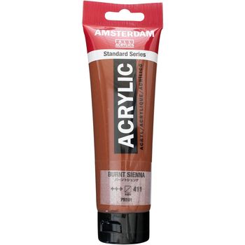 Blank page Ακρυλικό χρώμα Burnt Sienna 411 της σειράς Amsterdam All Acrylics Standard Series σε συσκευασία των 120ml. Τα χρώματα Amsterdam Standard Series είναι εξαιρετικής ποιότητας ακρυλικά χρώματα με την εγγύηση της Ολλανδικής Royal Talens. Φτιαγμένα με υψηλής ποιότητας, ανθεκτικές στο φως χρωστικές, εχουν βαθμολογία αντοχής στο φως +++ (100+ χρόνια υπό συνθήκες μουσείου). Η σειρά Standard σας προσφέρει μία ευρεία γκάμα από εξαιρετικά ζωντανά αδιαφανή ακρυλικά χρώματα, εύκολα στη χρήση, τα οποία προσφέρουν ομαλή εφαρμογή. Χρησιμοποιήστε το χρώμα απευθείας από το σωλήνα ή αραιωμένο με λίγο νερό ή ένα από τα διαλυτικά για ακρυλικά χρώματα. Είναι κατασκευασμένα με 100% συνδετικό ακρυλικής ρητίνης, με αποτέλεσμα μια εξαιρετικά ανθεκτική και εύκαμπτη μεμβράνη βαφής με ομοιόμορφο βαθμό γυαλάδας. Άοσμη φόρμουλα με βάση το νερό η οποία γίνεται αδιάβροχη και με μέγάλη αντοχή όταν στεγνώσει. Προσκολλάται σχεδόν σε οποιαδήποτε ελαφρώς πορώδη επιφάνεια, συμπεριλαμβανομένου καμβά, χαρτιού, χαρτονιού, ξύλου, πέτρας και τσιμέντου.
