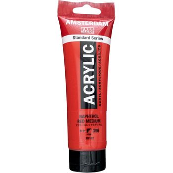 Blank page Ακρυλικό χρώμα Naphtol Red Medium 396 της σειράς Amsterdam All Acrylics Standard Series σε συσκευασία των 120ml. Τα χρώματα Amsterdam Standard Series είναι εξαιρετικής ποιότητας ακρυλικά χρώματα με την εγγύηση της Ολλανδικής Royal Talens. Φτιαγμένα με υψηλής ποιότητας, ανθεκτικές στο φως χρωστικές, εχουν βαθμολογία αντοχής στο φως +++ (100+ χρόνια υπό συνθήκες μουσείου). Η σειρά Standard σας προσφέρει μία ευρεία γκάμα από εξαιρετικά ζωντανά αδιαφανή ακρυλικά χρώματα, εύκολα στη χρήση, τα οποία προσφέρουν ομαλή εφαρμογή. Χρησιμοποιήστε το χρώμα απευθείας από το σωλήνα ή αραιωμένο με λίγο νερό ή ένα από τα διαλυτικά για ακρυλικά χρώματα. Είναι κατασκευασμένα με 100% συνδετικό ακρυλικής ρητίνης, με αποτέλεσμα μια εξαιρετικά ανθεκτική και εύκαμπτη μεμβράνη βαφής με ομοιόμορφο βαθμό γυαλάδας. Άοσμη φόρμουλα με βάση το νερό η οποία γίνεται αδιάβροχη και με μέγάλη αντοχή όταν στεγνώσει. Προσκολλάται σχεδόν σε οποιαδήποτε ελαφρώς πορώδη επιφάνεια, συμπεριλαμβανομένου καμβά, χαρτιού, χαρτονιού, ξύλου, πέτρας και τσιμέντου.