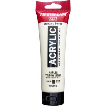 Blank page Ακρυλικό χρώμα Naples Yellow Light 222 της σειράς Amsterdam All Acrylics Standard Series σε συσκευασία των 120ml. Τα χρώματα Amsterdam Standard Series είναι εξαιρετικής ποιότητας ακρυλικά χρώματα με την εγγύηση της Ολλανδικής Royal Talens. Φτιαγμένα με υψηλής ποιότητας, ανθεκτικές στο φως χρωστικές, εχουν βαθμολογία αντοχής στο φως +++ (100+ χρόνια υπό συνθήκες μουσείου). Η σειρά Standard σας προσφέρει μία ευρεία γκάμα από εξαιρετικά ζωντανά αδιαφανή ακρυλικά χρώματα, εύκολα στη χρήση, τα οποία προσφέρουν ομαλή εφαρμογή. Χρησιμοποιήστε το χρώμα απευθείας από το σωλήνα ή αραιωμένο με λίγο νερό ή ένα από τα διαλυτικά για ακρυλικά χρώματα. Είναι κατασκευασμένα με 100% συνδετικό ακρυλικής ρητίνης, με αποτέλεσμα μια εξαιρετικά ανθεκτική και εύκαμπτη μεμβράνη βαφής με ομοιόμορφο βαθμό γυαλάδας. Άοσμη φόρμουλα με βάση το νερό η οποία γίνεται αδιάβροχη και με μέγάλη αντοχή όταν στεγνώσει. Προσκολλάται σχεδόν σε οποιαδήποτε ελαφρώς πορώδη επιφάνεια, συμπεριλαμβανομένου καμβά, χαρτιού, χαρτονιού, ξύλου, πέτρας και τσιμέντου.