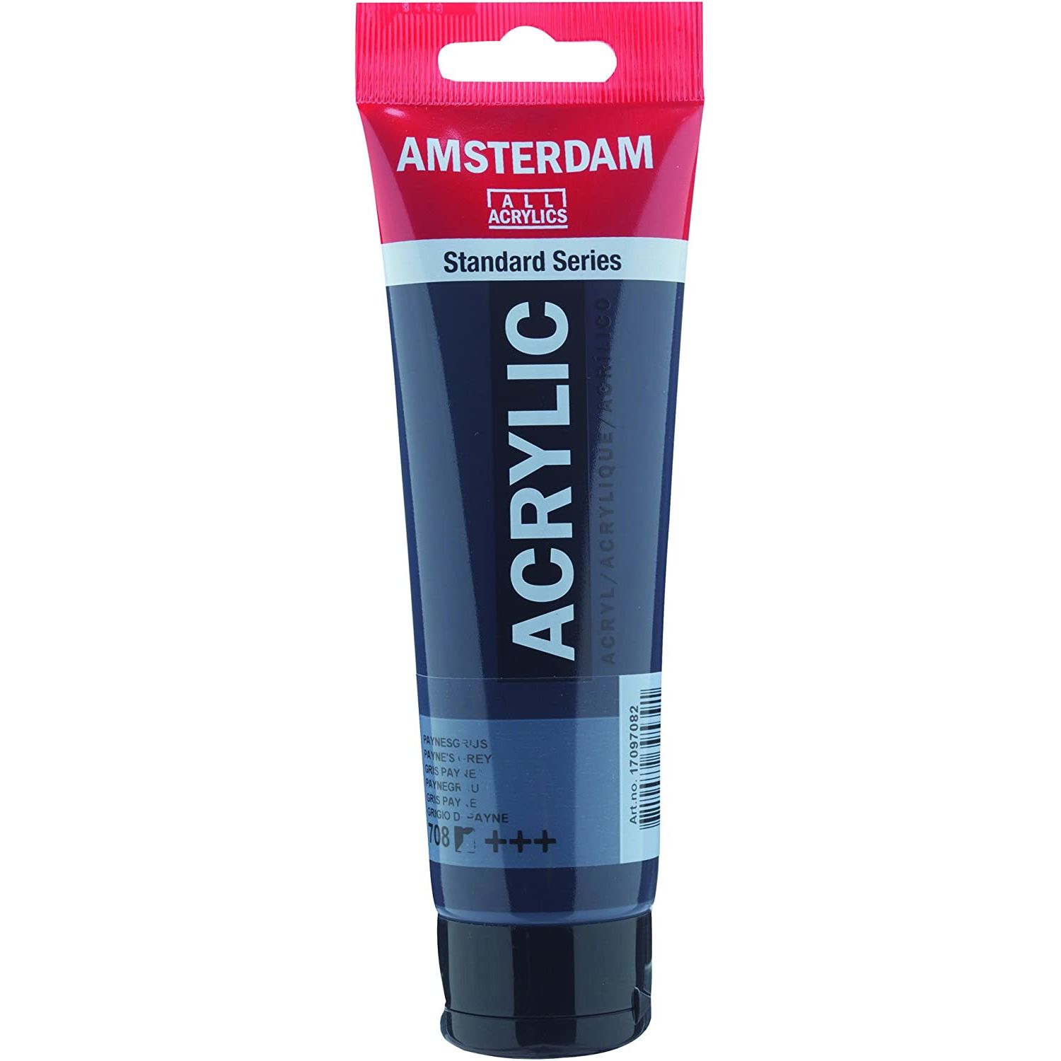 Blank page   Ακρυλικό χρώμα Paynes Grey 708 της σειράς Amsterdam All Acrylics Standard Series σε συσκευασία των 120ml. Τα χρώματα Amsterdam Standard Series είναι εξαιρετικής ποιότητας ακρυλικά χρώματα με την εγγύηση της Ολλανδικής Royal Talens. Φτιαγμένα με υψηλής ποιότητας, ανθεκτικές στο φως χρωστικές, εχουν βαθμολογία αντοχής στο φως +++ (100+ χρόνια υπό συνθήκες μουσείου). Η σειρά Standard σας προσφέρει μία ευρεία γκάμα από εξαιρετικά ζωντανά αδιαφανή ακρυλικά χρώματα, εύκολα στη χρήση, τα οποία προσφέρουν ομαλή εφαρμογή. Χρησιμοποιήστε το χρώμα απευθείας από το σωλήνα ή αραιωμένο με λίγο νερό ή ένα από τα διαλυτικά για ακρυλικά χρώματα. Είναι κατασκευασμένα με 100% συνδετικό ακρυλικής ρητίνης, με αποτέλεσμα μια εξαιρετικά ανθεκτική και εύκαμπτη μεμβράνη βαφής με ομοιόμορφο βαθμό γυαλάδας. Άοσμη φόρμουλα με βάση το νερό η οποία γίνεται αδιάβροχη και με μέγάλη αντοχή όταν στεγνώσει. Προσκολλάται σχεδόν σε οποιαδήποτε ελαφρώς πορώδη επιφάνεια, συμπεριλαμβανομένου καμβά, χαρτιού, χαρτονιού, ξύλου, πέτρας και τσιμέντου.