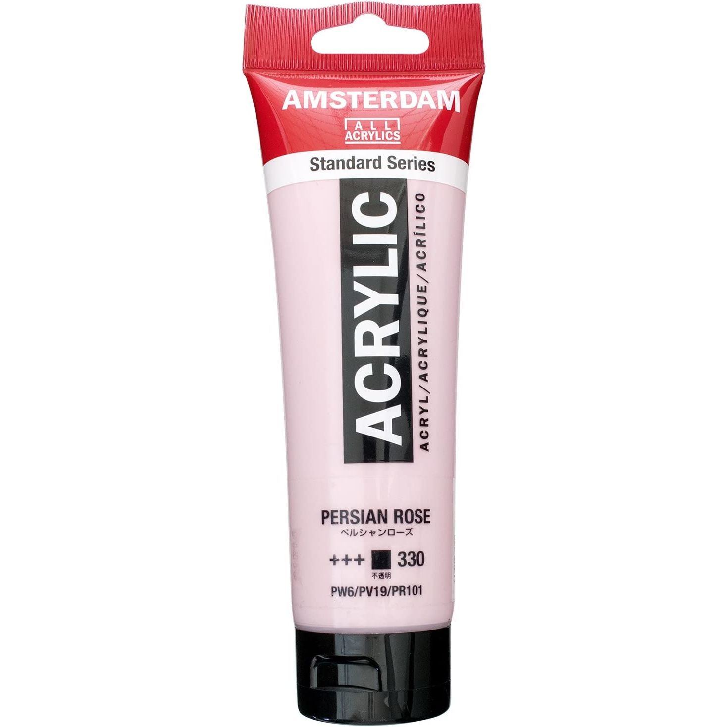 Blank page Ακρυλικό χρώμα Persian Rose 330 της σειράς Amsterdam All Acrylics Standard Series σε συσκευασία των 120ml. Τα χρώματα Amsterdam Standard Series είναι εξαιρετικής ποιότητας ακρυλικά χρώματα με την εγγύηση της Ολλανδικής Royal Talens. Φτιαγμένα με υψηλής ποιότητας, ανθεκτικές στο φως χρωστικές, εχουν βαθμολογία αντοχής στο φως +++ (100+ χρόνια υπό συνθήκες μουσείου). Η σειρά Standard σας προσφέρει μία ευρεία γκάμα από εξαιρετικά ζωντανά αδιαφανή ακρυλικά χρώματα, εύκολα στη χρήση, τα οποία προσφέρουν ομαλή εφαρμογή. Χρησιμοποιήστε το χρώμα απευθείας από το σωλήνα ή αραιωμένο με λίγο νερό ή ένα από τα διαλυτικά για ακρυλικά χρώματα. Είναι κατασκευασμένα με 100% συνδετικό ακρυλικής ρητίνης, με αποτέλεσμα μια εξαιρετικά ανθεκτική και εύκαμπτη μεμβράνη βαφής με ομοιόμορφο βαθμό γυαλάδας. Άοσμη φόρμουλα με βάση το νερό η οποία γίνεται αδιάβροχη και με μέγάλη αντοχή όταν στεγνώσει. Προσκολλάται σχεδόν σε οποιαδήποτε ελαφρώς πορώδη επιφάνεια, συμπεριλαμβανομένου καμβά, χαρτιού, χαρτονιού, ξύλου, πέτρας και τσιμέντου.