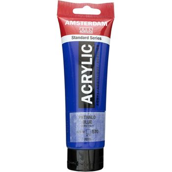 Blank page Ακρυλικό χρώμα Phthalo Blue 570 της σειράς Amsterdam All Acrylics Standard Series σε συσκευασία των 120ml. Τα χρώματα Amsterdam Standard Series είναι εξαιρετικής ποιότητας ακρυλικά χρώματα με την εγγύηση της Ολλανδικής Royal Talens. Φτιαγμένα με υψηλής ποιότητας, ανθεκτικές στο φως χρωστικές, εχουν βαθμολογία αντοχής στο φως +++ (100+ χρόνια υπό συνθήκες μουσείου). Η σειρά Standard σας προσφέρει μία ευρεία γκάμα από εξαιρετικά ζωντανά αδιαφανή ακρυλικά χρώματα, εύκολα στη χρήση, τα οποία προσφέρουν ομαλή εφαρμογή. Χρησιμοποιήστε το χρώμα απευθείας από το σωλήνα ή αραιωμένο με λίγο νερό ή ένα από τα διαλυτικά για ακρυλικά χρώματα. Είναι κατασκευασμένα με 100% συνδετικό ακρυλικής ρητίνης, με αποτέλεσμα μια εξαιρετικά ανθεκτική και εύκαμπτη μεμβράνη βαφής με ομοιόμορφο βαθμό γυαλάδας. Άοσμη φόρμουλα με βάση το νερό η οποία γίνεται αδιάβροχη και με μέγάλη αντοχή όταν στεγνώσει. Προσκολλάται σχεδόν σε οποιαδήποτε ελαφρώς πορώδη επιφάνεια, συμπεριλαμβανομένου καμβά, χαρτιού, χαρτονιού, ξύλου, πέτρας και τσιμέντου.