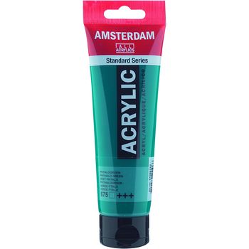 Blank page Ακρυλικό χρώμα Phthalo Green 675 της σειράς Amsterdam All Acrylics Standard Series σε συσκευασία των 120ml. Τα χρώματα Amsterdam Standard Series είναι εξαιρετικής ποιότητας ακρυλικά χρώματα με την εγγύηση της Ολλανδικής Royal Talens. Φτιαγμένα με υψηλής ποιότητας, ανθεκτικές στο φως χρωστικές, εχουν βαθμολογία αντοχής στο φως +++ (100+ χρόνια υπό συνθήκες μουσείου). Η σειρά Standard σας προσφέρει μία ευρεία γκάμα από εξαιρετικά ζωντανά αδιαφανή ακρυλικά χρώματα, εύκολα στη χρήση, τα οποία προσφέρουν ομαλή εφαρμογή. Χρησιμοποιήστε το χρώμα απευθείας από το σωλήνα ή αραιωμένο με λίγο νερό ή ένα από τα διαλυτικά για ακρυλικά χρώματα. Είναι κατασκευασμένα με 100% συνδετικό ακρυλικής ρητίνης, με αποτέλεσμα μια εξαιρετικά ανθεκτική και εύκαμπτη μεμβράνη βαφής με ομοιόμορφο βαθμό γυαλάδας. Άοσμη φόρμουλα με βάση το νερό η οποία γίνεται αδιάβροχη και με μέγάλη αντοχή όταν στεγνώσει. Προσκολλάται σχεδόν σε οποιαδήποτε ελαφρώς πορώδη επιφάνεια, συμπεριλαμβανομένου καμβά, χαρτιού, χαρτονιού, ξύλου, πέτρας και τσιμέντου.