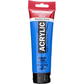 Blank page Ακρυλικό χρώμα Primary Cyan 572 της σειράς Amsterdam All Acrylics Standard Series σε συσκευασία των 120ml. Τα χρώματα Amsterdam Standard Series είναι εξαιρετικής ποιότητας ακρυλικά χρώματα με την εγγύηση της Ολλανδικής Royal Talens. Φτιαγμένα με υψηλής ποιότητας, ανθεκτικές στο φως χρωστικές, εχουν βαθμολογία αντοχής στο φως +++ (100+ χρόνια υπό συνθήκες μουσείου). Η σειρά Standard σας προσφέρει μία ευρεία γκάμα από εξαιρετικά ζωντανά αδιαφανή ακρυλικά χρώματα, εύκολα στη χρήση, τα οποία προσφέρουν ομαλή εφαρμογή. Χρησιμοποιήστε το χρώμα απευθείας από το σωλήνα ή αραιωμένο με λίγο νερό ή ένα από τα διαλυτικά για ακρυλικά χρώματα. Είναι κατασκευασμένα με 100% συνδετικό ακρυλικής ρητίνης, με αποτέλεσμα μια εξαιρετικά ανθεκτική και εύκαμπτη μεμβράνη βαφής με ομοιόμορφο βαθμό γυαλάδας. Άοσμη φόρμουλα με βάση το νερό η οποία γίνεται αδιάβροχη και με μέγάλη αντοχή όταν στεγνώσει. Προσκολλάται σχεδόν σε οποιαδήποτε ελαφρώς πορώδη επιφάνεια, συμπεριλαμβανομένου καμβά, χαρτιού, χαρτονιού, ξύλου, πέτρας και τσιμέντου.